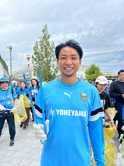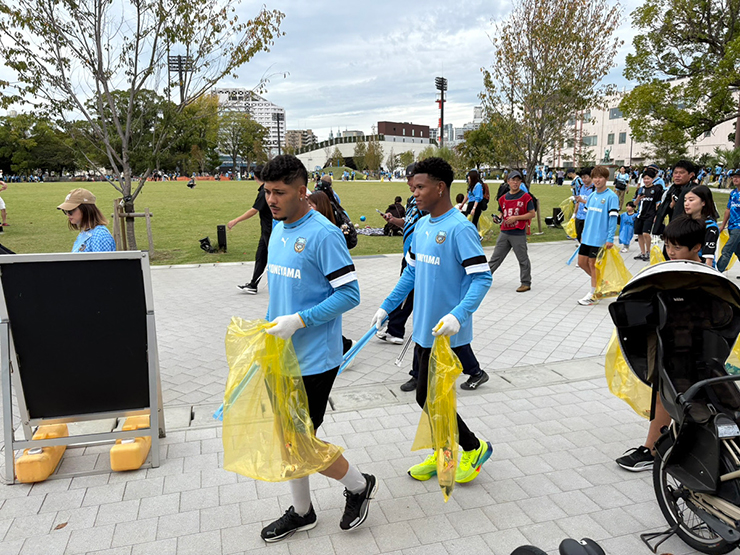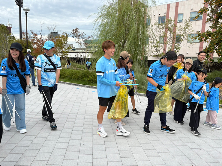 小林選手は、とてもくまなくごみを探しておりましたが、中々ごみが見つからず...。それでも、河川敷で行っている時と比べて少なくなっている現状に、喜んでいる様子でした。また、伊藤達哉選手は、多くのサポーターとの記念撮影に応じながらのゴミ拾いでしたが、「サポーターの方々との交流もでき、ゴミ拾いという社会貢献もできる」と、この活動が選手とファンとの距離も近く、また清掃活動できることを楽しんでいました!!
