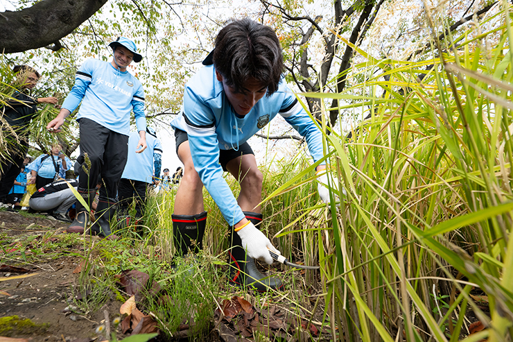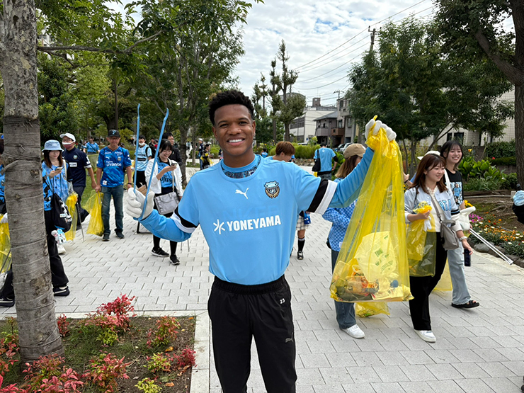 マルシーニョ選手とエリソン選手は B 班の先頭に立ち、隅々までゴミを探していました。普段なかなかないサポーターの皆さんとの活動に、ワクワクしている様子が笑顔から伝わってきました!!