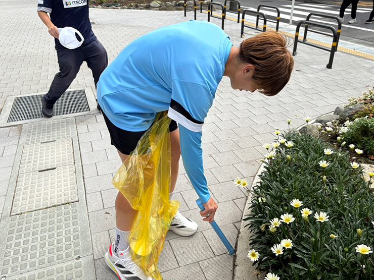 「サポーターの方が拾ったものばかりなんです」と謙遜していましたが、持ち前の広い視野で小さなゴミも見逃さず、丁寧に拾っていました。