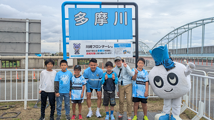そして、河川標識の塗装を行っていた河原選手がギリギリで合流し、全員で記念撮影を行いました!