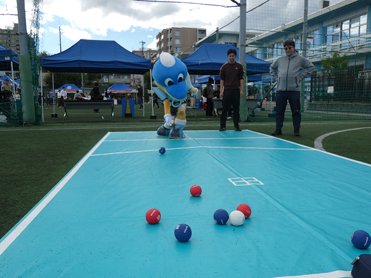 昨年に続き人気の「ボッチャ」を実施! 今年は宮前スポーツセンター様のご協力のもと、気軽に楽しめるゲーム体験を行いました。
