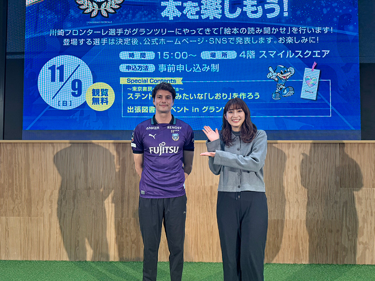 そして、もう一つ。フロンターレが川崎市教育委員会や川崎市立図書館の皆さんと協働で毎年行っているイベント、「読書のまち・かわさき 川崎フロンターレ選手と本を楽しもう!」のイベントが、11月9日(日)グランツリー武蔵小杉で開催され、山口瑠伊選手が50人の子どもたちに本を読み聞かせてくれました!