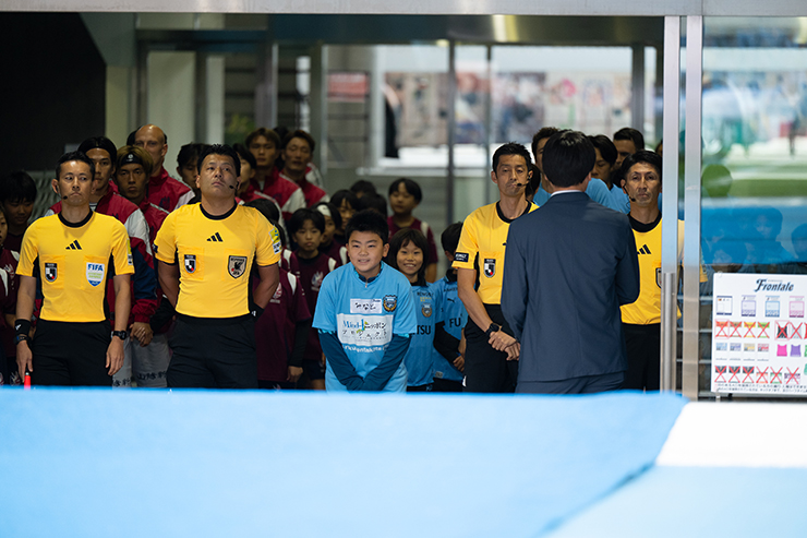 リハーサルで実施した写真撮影を本番でもスムーズに撮影することができました!! また、ピックアップパーソンとして入場時に審判・選手と一緒に先頭を歩く重要な役割を果たしてくれた「ミナト」くんも緊張した面持ちでしたが見事に役割を果たしてくれました!