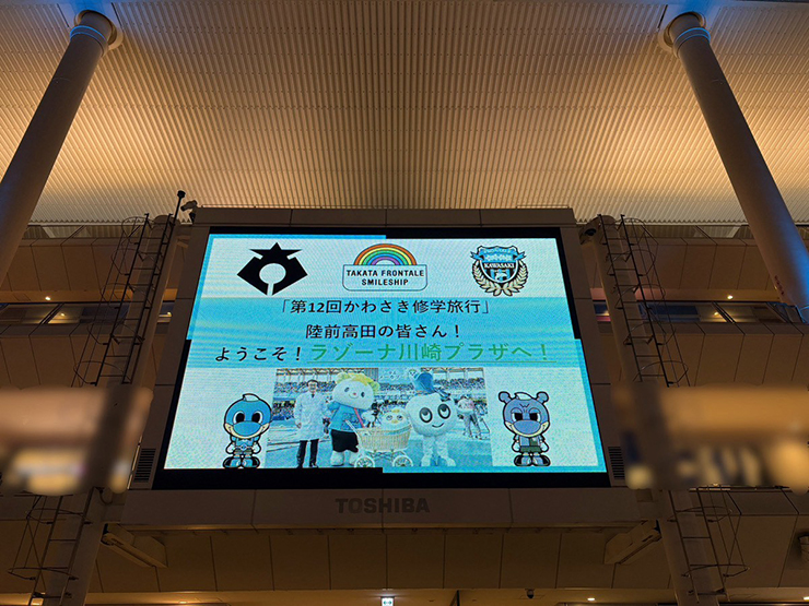 そして、U等々力を後にし「ラゾーナ川崎プラザ」へ。到着してルーファー広場に向かうと、ビジョンに「ようこそ! ラゾーナ川崎プラザへ」と投影いただきました! ここで集合写真を撮影した後は、夜ご飯とお土産を購入する自由時間で皆さんそれぞれおいしいご飯を食べていましたよ!