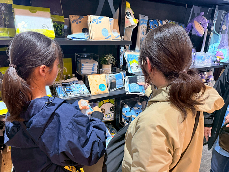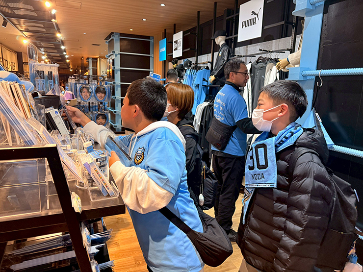 「あさお青玄まつり」を後にすると、今回最後の目的地である、オフィシャルグッズショップ「アズーロ・ネロ」へ。「アズーロ・ネロ」では、お土産やグッズなど皆さんそれぞれ商品を購入しておりました。