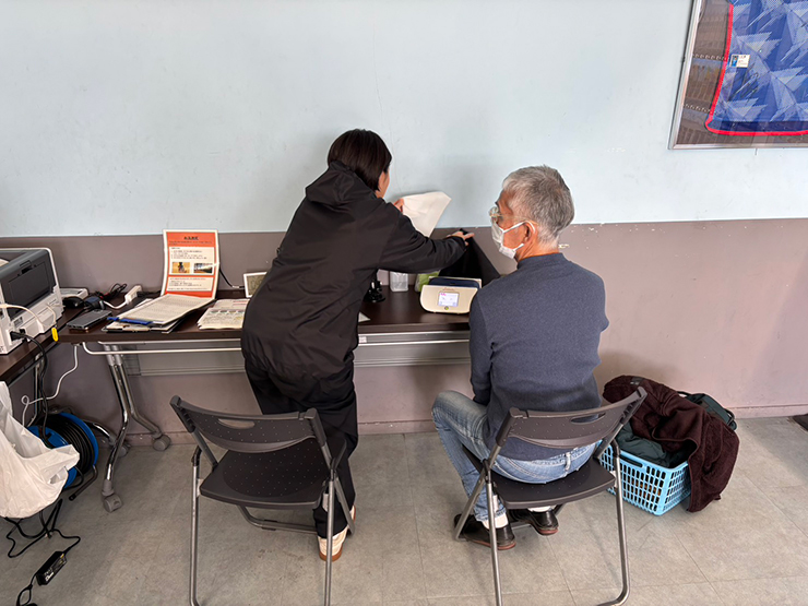 今回の測定会は2回以上参加してくれている方がほとんど。有資格であるヘルスチェックアドバイザーからのアドバイスを熱心に聞いていました。過去の記録をもってきてくれている方も!