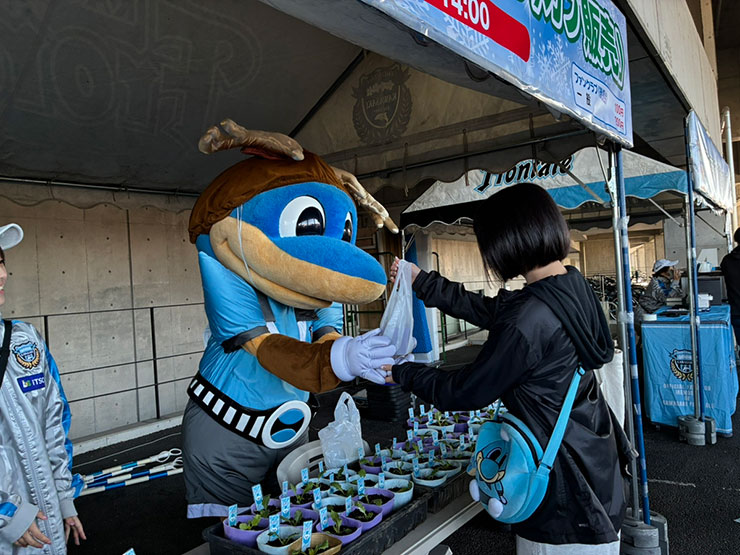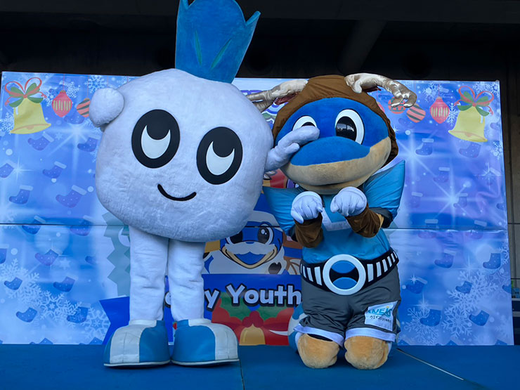 まずはステージ。ステージでは、マスコット撮影会とクリスマスプレゼント大抽選会を開催しました! この日の撮影会には、ふろん太とカブレラが登場。ふろん太はなんとトナカイバージョンで登場し、会場は「かわいい」の声でいっぱいに!