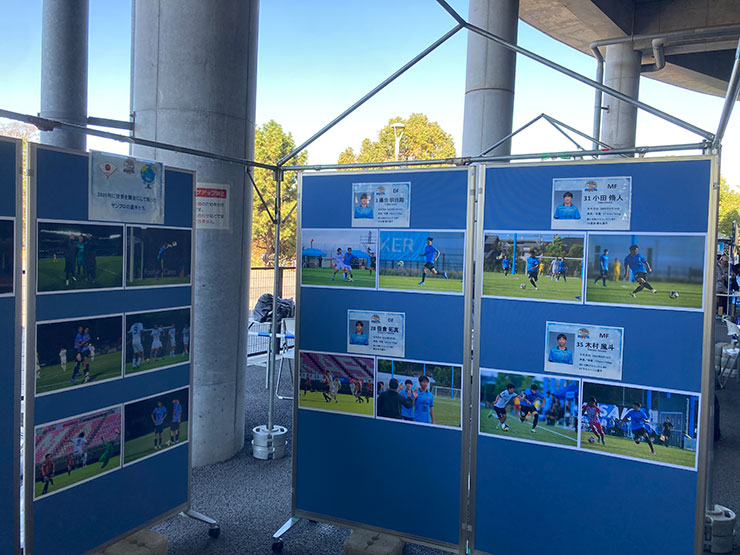 写真展ブースの担当者はアカデミーのことが大好きで、現在の高校3年生と2年前にAnker フロンタウン生田でのプレミアリーグで入場者数を数える仕事を一緒にやったことがありました。写真を選ぶ際に、彼らの背中が映っている写真を見て体が大きくなっただけでなく、頼れる先輩になったなとしみじみ感じていましたよ。