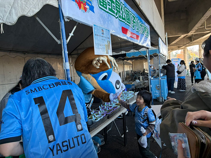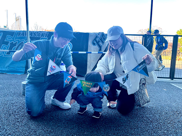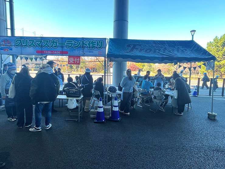 川崎フロンターレカラーの青と黒でつくる“クリスマスガーランドづくり”のブースでは、イベント開始直後から多くの方が参加してくださりました。