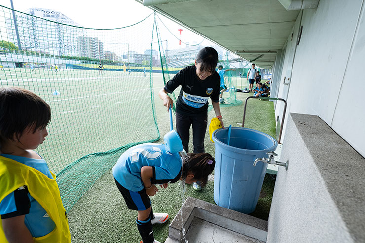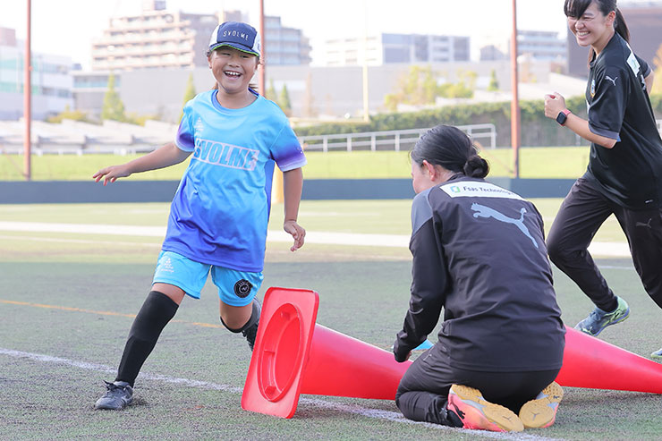 川崎スクール(富士通スタジアム川崎)のウォームアップスペースで開催していた女子U-8、女子U-10、女子U-12クラスは、フィールドへ場所を移し、女子U-8、女子U-12クラスとして開催。