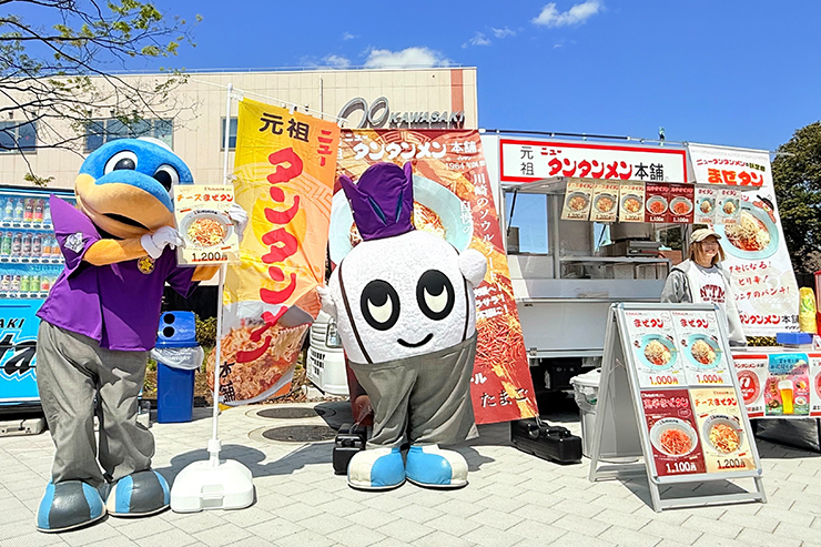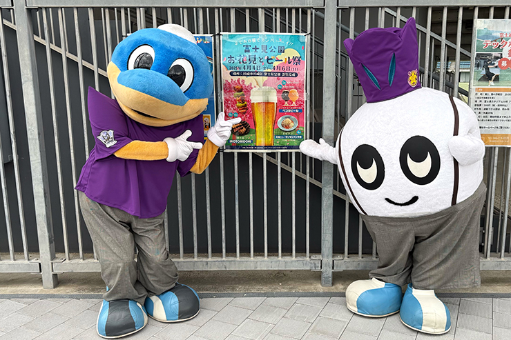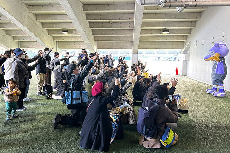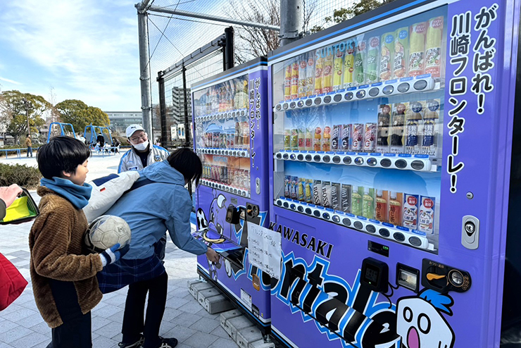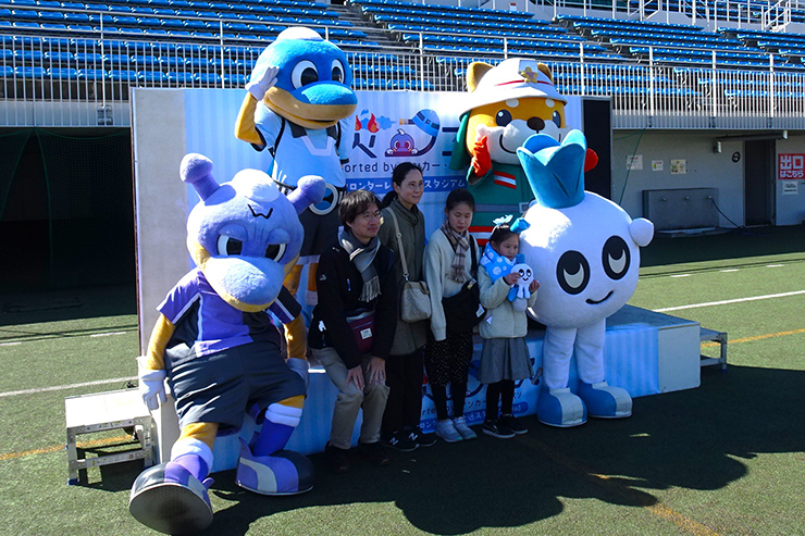 1月には、富士見公園にしかない「ワルンタデザイン」の自販機設置を記念したイベントを実施しました。ワルンタはホームゲームにもあまり顔を出さないため、スタッフがワルンタの元まで行き「主役のイベントなのでどうしても...」と何度もお願いをした結果、富士見公園まで来てくれました。