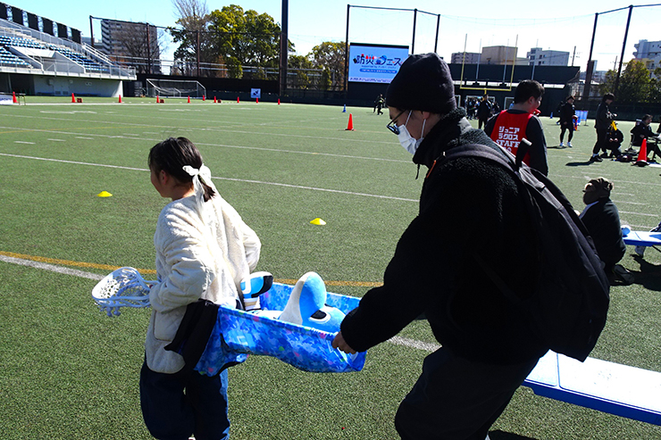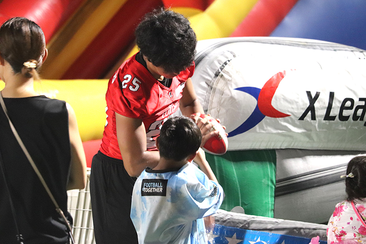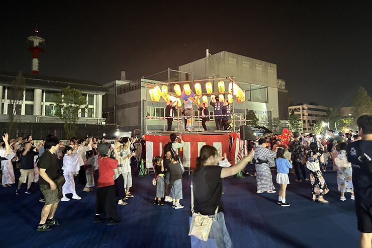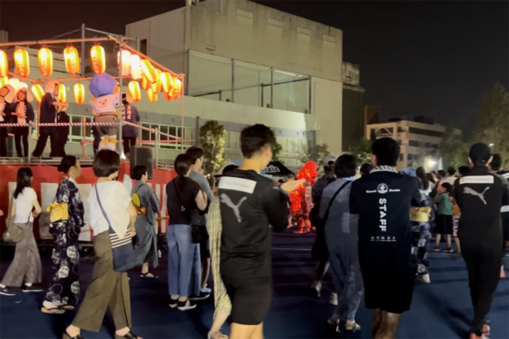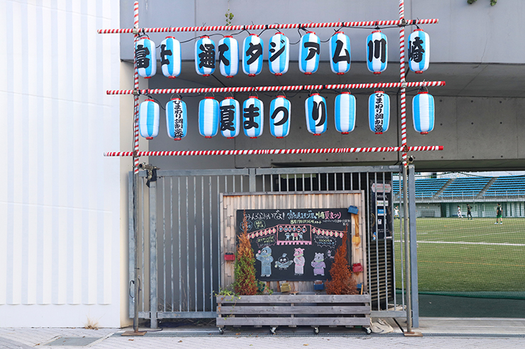 8月には、4,384名の地域の皆様に来ていただいた「第6回富士通スタジアム川崎夏まつり supported by ひまわり調剤薬局」を開催! 今年初めて川崎フロンターレスクールイベントと同時開催し、多くのスクール生にも来てもらうことができました。リニューアル後初めてエントランス広場も使用した夏まつりだったので、やぐらやキッチンカー、ブースの配置を決めるのが難しかったですが、お祭り最後の盆踊りも盛り上がり一安心...。スタッフやコーチも盆踊りに参加するなど、スタッフの夏の思い出にもなりました。
