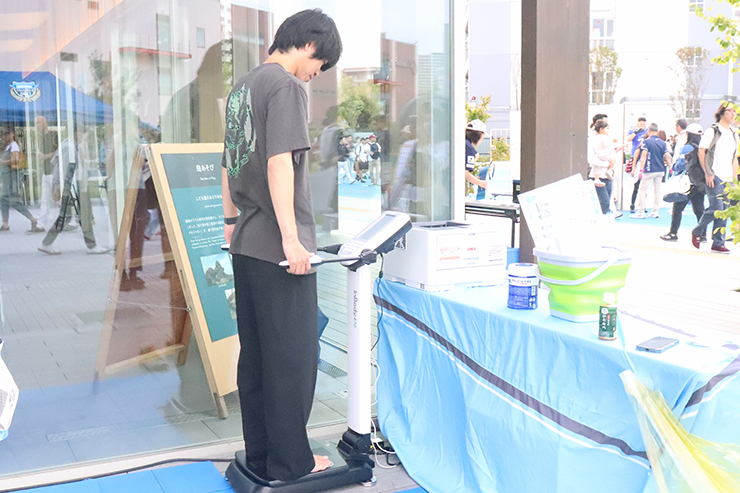 サポーターに見守られながら体成分分析測定(InBody)も体験していました。お菓子を食べたことを言い訳していたのはここだけの話...