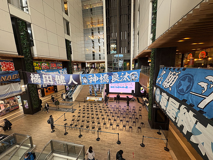 1F吹き抜け部分には、選手の横断幕を掲出!