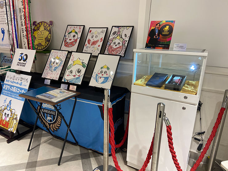 フロンターレ展といえば「お宝グッズ展示」。2025年のイベントで生まれた、フロンターレらしい「お宝」を展示しました。