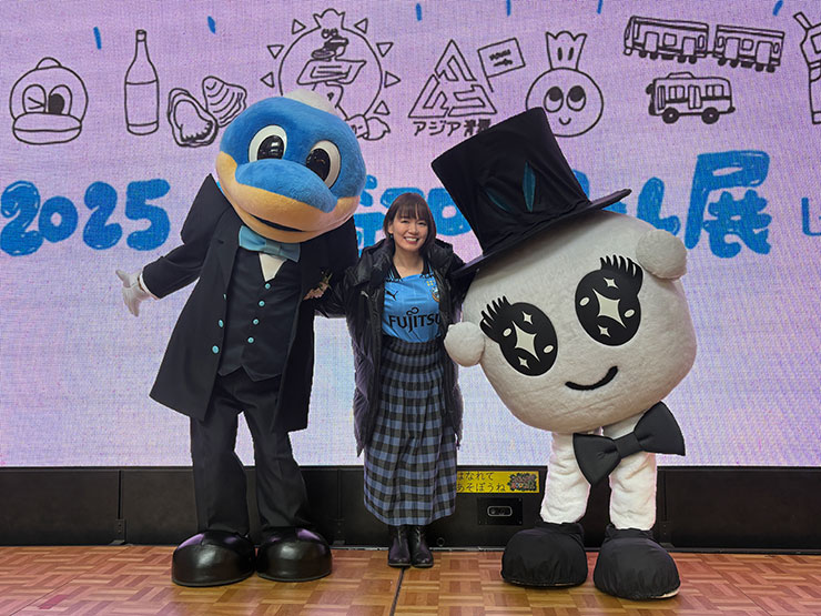 スタジアムMCの小森すみ恵さん、クラブを代表してふろん太&カブレラが登壇!!