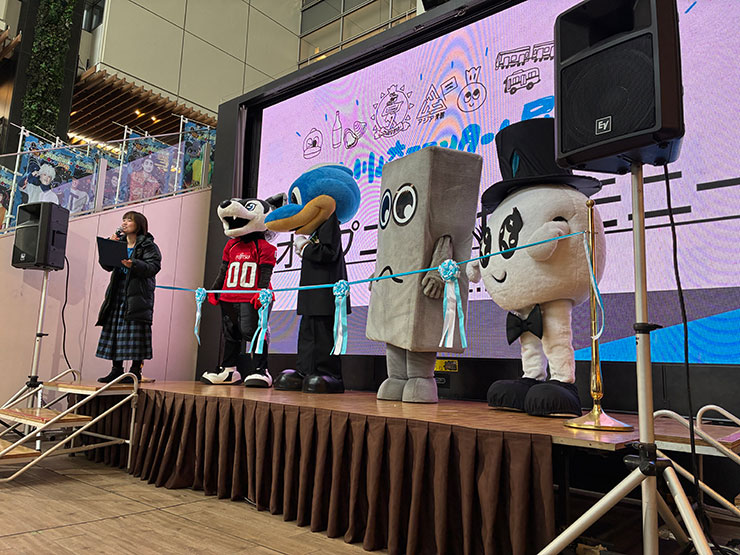 オープニングセレモニーでは、おそらく史上初(?)となる、マスコットたちによるテープカットセレモニーを執り行いました。(ふろん太、カブレラ、チョリ山チョリ男、フロンティー)