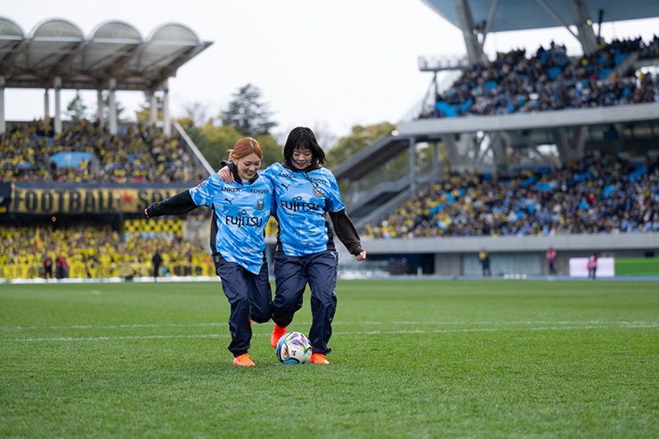 そして本番。宮崎さん、松岡さんともに力を合わせて蹴ったツインシュートはゴール右隅へ吸い込まれ、とてもいいコースに決まりました!