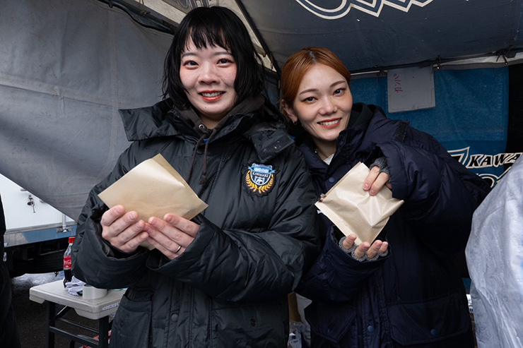 フロンターレサポーターは手慣れたようにししゃもを受け取り、柏レイソルサポーターは「本当にくれるんだ!」と驚きつつ受け取る姿がとても印象的でした。