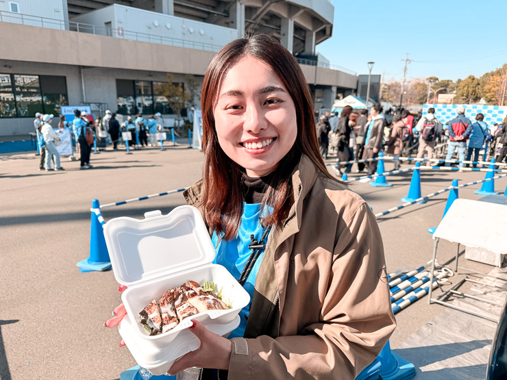 そして『AGRUME FOOD TRUCK』さんからは、スパイス香るジャークチキンオーバーライスが登場。食欲をそそる香りがフロンパーク中に広がり、気づけばキッチンカーの後ろまで行列が伸びるほどの人気ぶりでした!