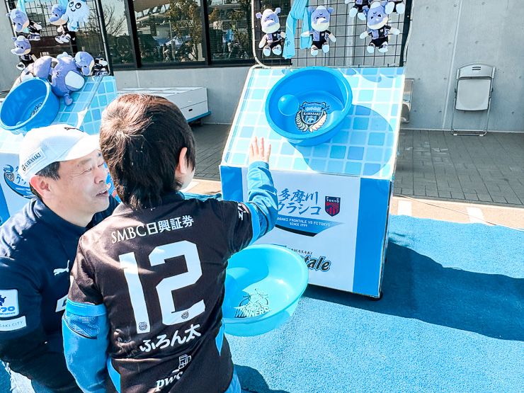 パチンターレも他のアトラクション同様、3種類のマス全てにボールを入れられた方には、多摩川クラシコ限定タペストリーステッカーをプレゼントしました。