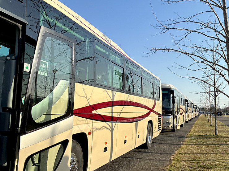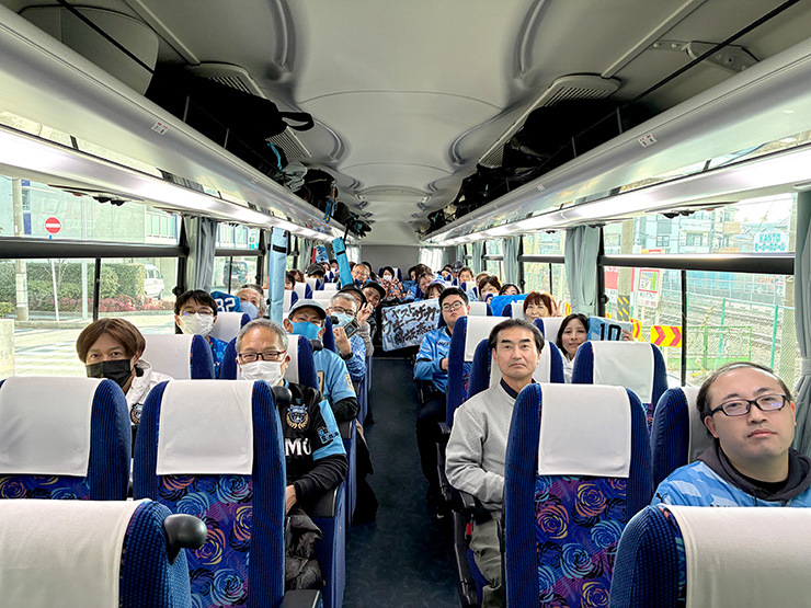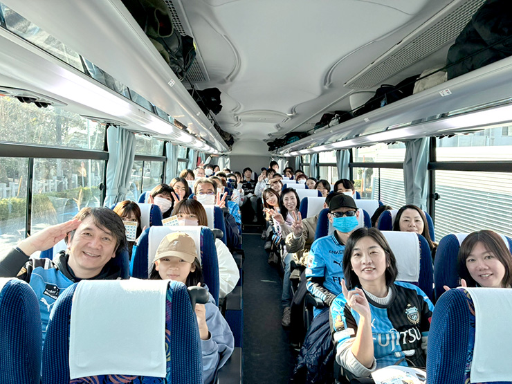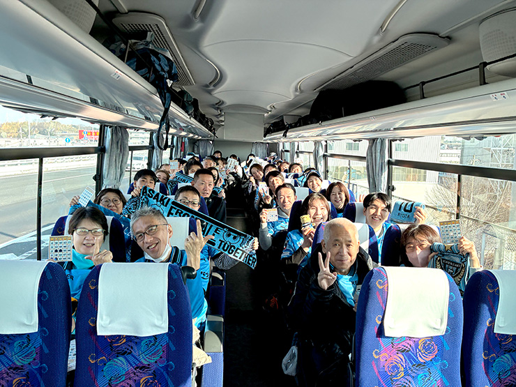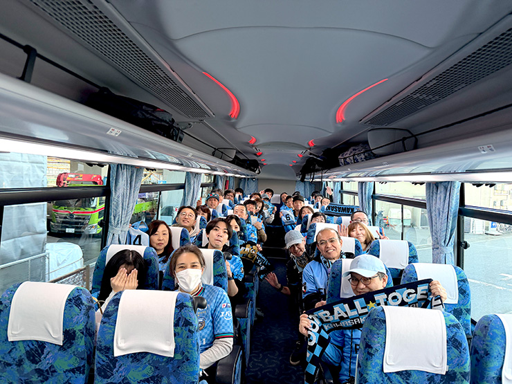 クラブスタッフ7名がツアーに帯同し、バスの台数5台、総勢約200名のサポーターの皆さんに参加いただきました。