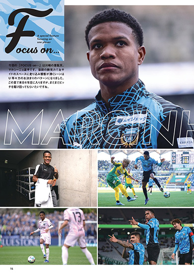 今回の「FOCUS on...」は川崎の韋駄天、マルシーニョ選手です。抜群の瞬発力で左サイドのスペースに走り込み観客が沸くシーンはU 等々力のお決まりのパターンになりました。この夏で来日6年目に入りますが、まだまだピッチを駆け回ってもらいたいですね。