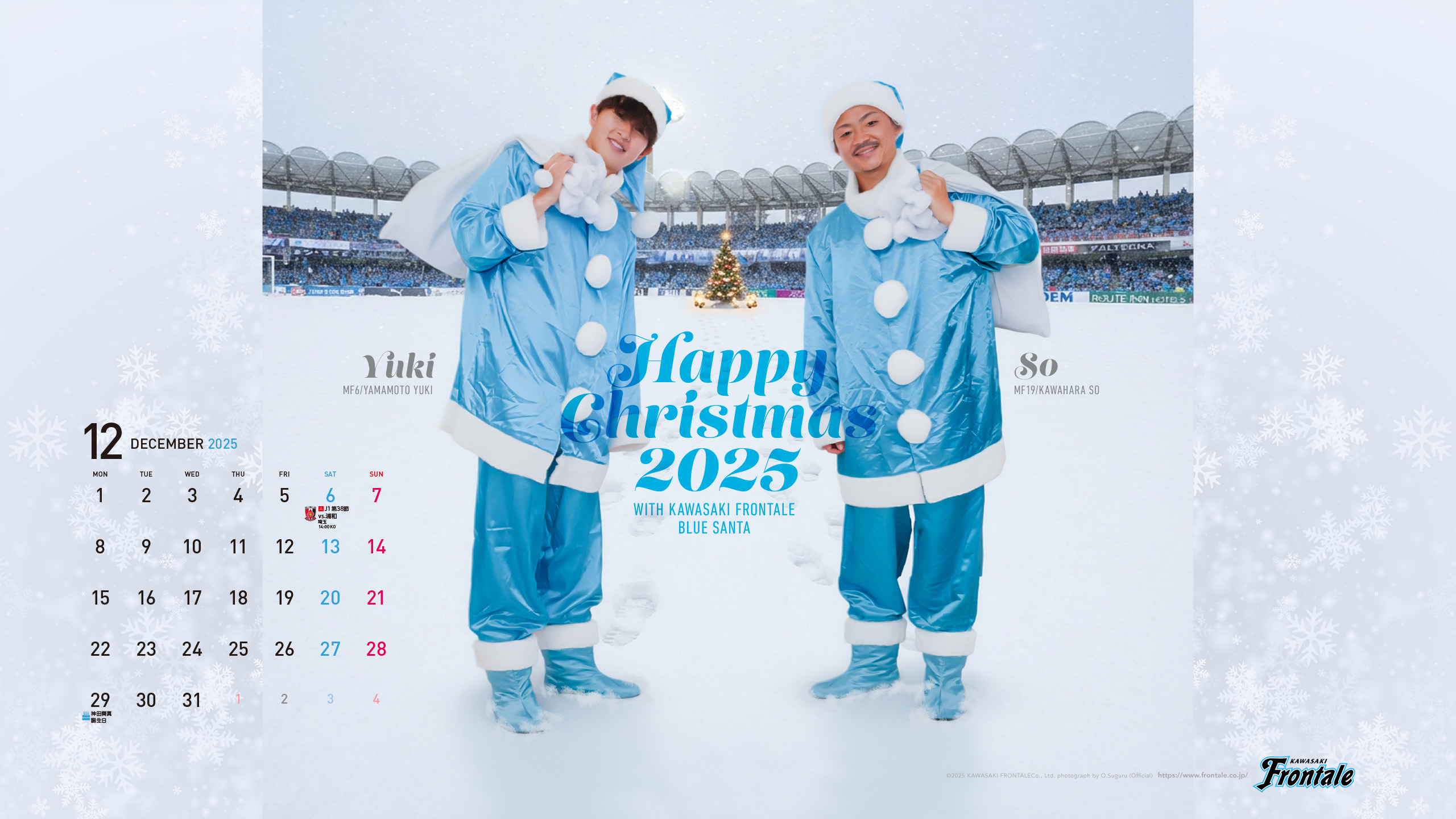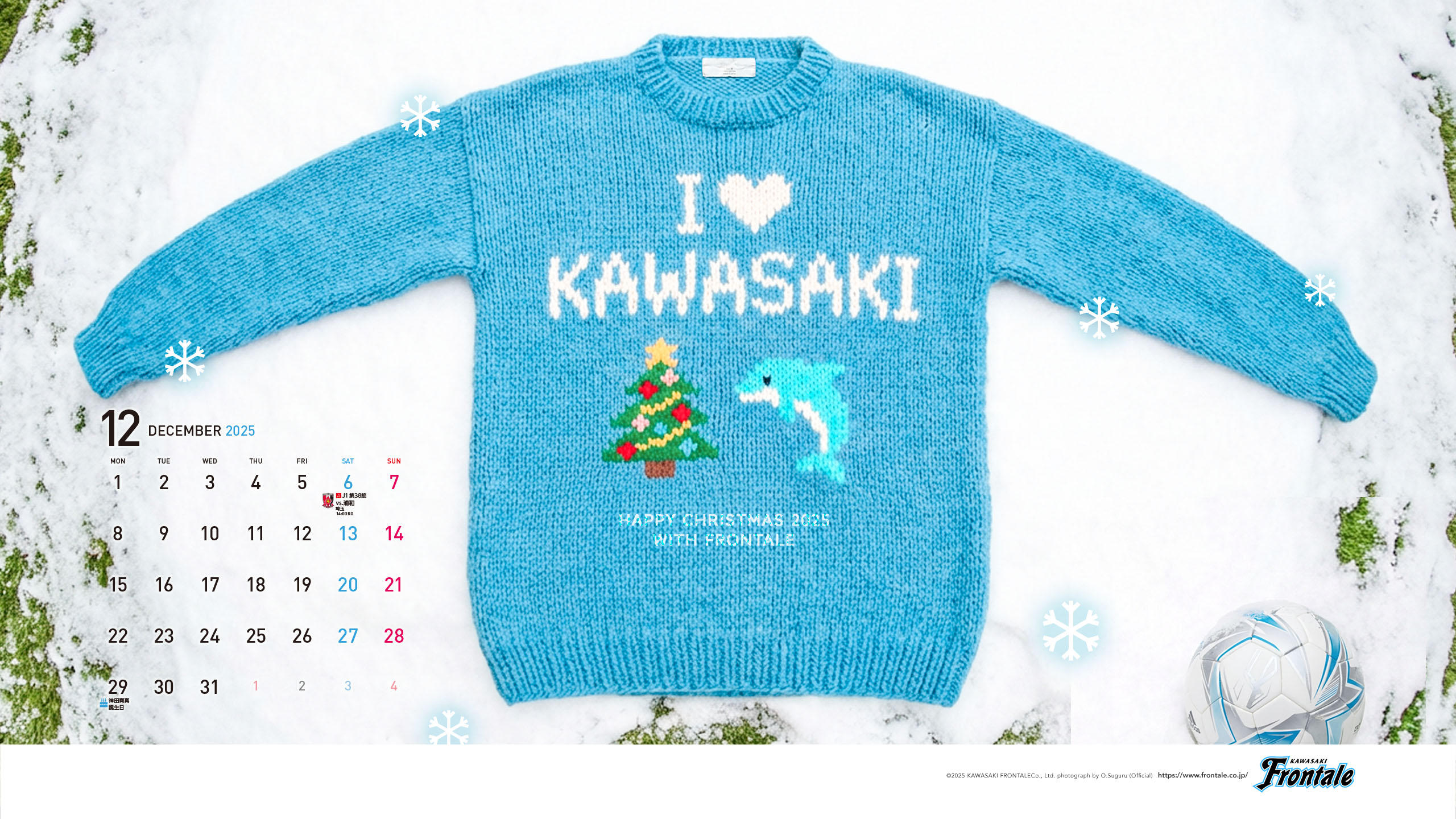 PC、タブレット用壁紙/2025年12月カレンダー付き