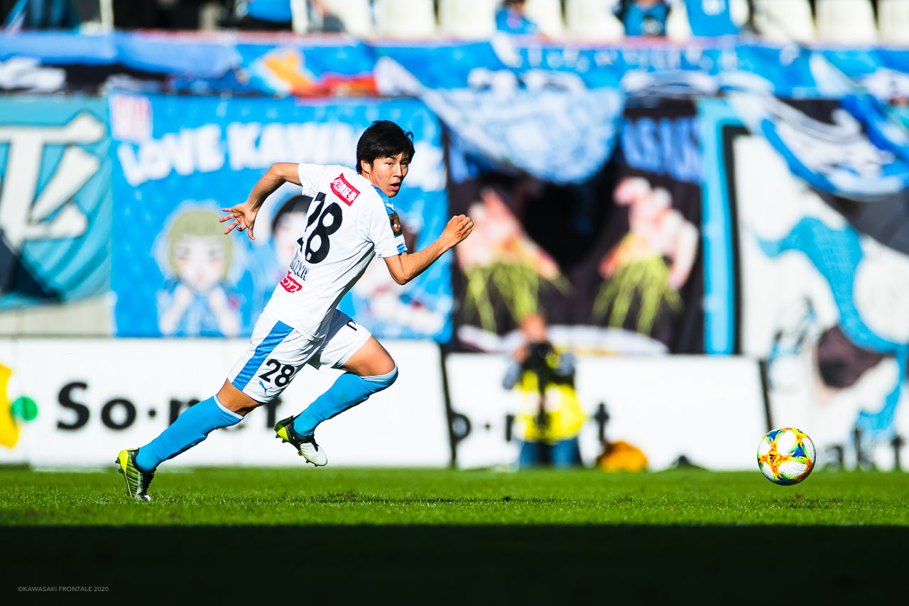 「フロンターレのトップ下といえば、やっぱりケンゴさん。得点もアシストもできますし、状況に応じたプレーができる。自分もそういう選手にならなきゃいけないと感じています。プロになってチームメイトとして一緒にプレーする機会が増えて、より尊敬するようになりました。ピッチ内はもちろんですが、ピッチ外でも学ぶべきことが本当に多いです。2019年はケンゴさんが試合に出たり僕が試合に出たりするなかで、会話をする機会が増えました。僕が試合に出ているときはハーフタイムや給水のときにケンゴさんにアドバイスをもらって、自分の感覚とすり合わせて2人で共有するというか。そこで新しい発見があったりして、成長させてもらっていると感じています」