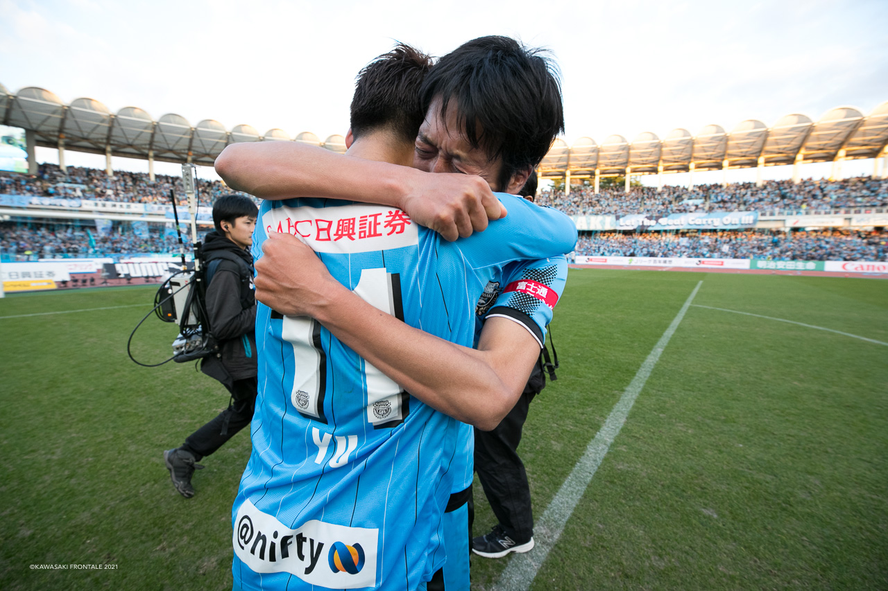 等々力でJ1最速優勝を決めた時、駆け寄ってくる若手選手たちを見て、「(自分の)子供のようだった」と笑顔で話していたケンゴ。それは、彼らに対しても伝えるべきことやその姿勢を見せてきたという日々でもあったからだ。もはや一選手の枠には収まりきらない振る舞いの変化は、周りにもわかるぐらいだったように思う。