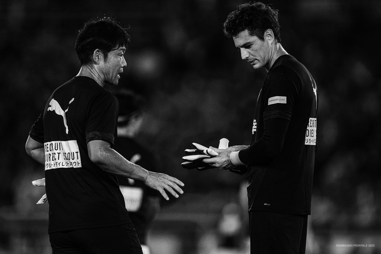「一見するとGKが防げそうだなと見えるボールで失点したので、そういう場合って、負けてしまったり勝点を落としてしまう流れになることも実際あると思うんです。ああいう大きな大会の初戦で、誰しも緊張するなかでのプレーでしたからね。おそらく瑠伊のなかに、『頑張んなきゃ』っていう意気込みがあったなかで、ガッカリしたと思うんです。でも、現実、フロンターレは勝ちました。勝った上で、反省ができた。あの試合があったから、基本に戻れたというか、瑠伊も真面目だから完璧を求めて成功させようというところがあったかもしれないけど、落ち着いてサッカーに取り組むことができたんじゃないかなと思いますし、僕自身も瑠伊に対してプラスに促せるなと思えたんですよ。それで、いつもやっている振り返りを映像を見せながらした上で、いろんな話をして、次はチームに勝ちをもたらすプレーができていくといいんじゃないかって話をしました。『もし、こうだったら』っていう仮の話ではなく、現実に起きたことに対して改めて何が大切かということが話せたのはよかったのかなと思います」