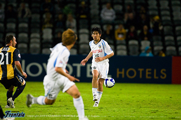 21分、フロンターレの左コーナーキック。ここでヴィトールのボールに谷口がヘッドで合わせ、貴重な追加点を挙げる。(2-0) 23分、フロンターレの攻撃。中村のスルーパスを受けたジュニーニョが右サイドから折り返し。こぼれ球に走り込んできた横山がミドルシュートを放つがブロックされる。さらに左サイドでウィトールが単独で持ち込むが、シュートはGKにキャッチされる。24分、寺田のロングフィードが前線へ。このボールに反応したテセが裏に抜けるが、DFに挟まれ惜しくもシュートは打てず。29分には、テセからボールを受け、中村とのコンビネーションからジュニーニョが抜け出すが、惜しくもGKに飛び出されてシュートに持ち込めず。さらに32分、ヴィトールが相手陣内でボールカット。そのまま左足でミドルシュートを狙うが、惜しくもゴール左に外れる。迎えた37分、中盤できれいにダイレクトパスがつながり、右サイドの森が折り返し。走り込んできたテセがスルーし、背後のジュニーニョがシュート。これがDFに当たりゴールへと吸いこまれる。見事なコンビネーションからのゴールだった(3-0) セントラルコーストも反撃。42分、ロングボールにムルジャが抜け出すが、GK川島が落ち着いてセーブ。こぼれ球も谷口がカバー。序盤こそセントラルコーストに攻勢をかけられたものの、その後はテセのゴールを皮切りにフロンターレが効果的な攻撃をしかけ、前半で3点リード。理想的な展開で前半を折り返した。