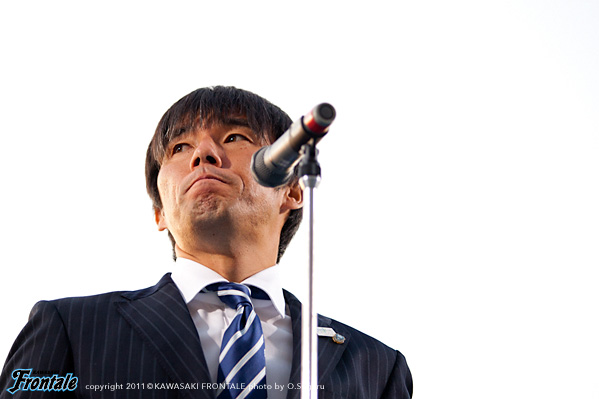 今日、ホーム最終戦ということで、セレモニーもあり、サポーターの皆さんへの感謝を述べさせてもらったんですが、本当にいつも変わらず、支えてくれた。本当に1年間ありがとうございましたという言葉を最初にあげなければならないと思っています。そういった中で、ジュニーニョの等々力でのラストゲームになるという事でどうしても勝ちたい。そして等々力で勝ってなかったという事も含めて選手たちの勝ちたいという気持ちが少し硬い方向に前半は出てしまって、というゲーム展開だったのかなと思っています。前半、どちらかというと、マリノスさんに押されてしまい、なかなかマイボールの時間が非常に短いという展開が続きました。途中から徐々に落ち着き始めてボールを動かす時間が増えたんですが、よく前半を0で抑え、折り返せたなというところだったと思います。それでハーフタイムに選手たち自身も落ち着いて後半に入れた。多少うちと比べると前半に飛ばして、ルーズボールの反応等を含めて早かったマリノスさんの足も止まり始めたということもあり、後半はこちらの流れになったのかなと思います。そういう中で、最初のゴール、ラッキーな部分はありましたが、あのゴールが非常に大きかったと思いますし、その中でカウンターが生きる形になり、そこで星を持っていると言っていいと思います。ジュニーニョが2つゴールを決めてという展開になりました。本当、いつも集まってくださるサポーターには、なかなか勝利、そして笑顔をプレゼントできませんでしたが、ようやく今日、すごくいい形で届けることができましたので。まだリーグが終わっていませんし、次のゲームで最大で2つ順位を上げる可能性があると。今の段階ですが。持っています。そこを含めて、そして天皇杯もありますので、最後まで今ひとついい流れができはじめているので崩さないようにやっていきたいと思います。以上です。