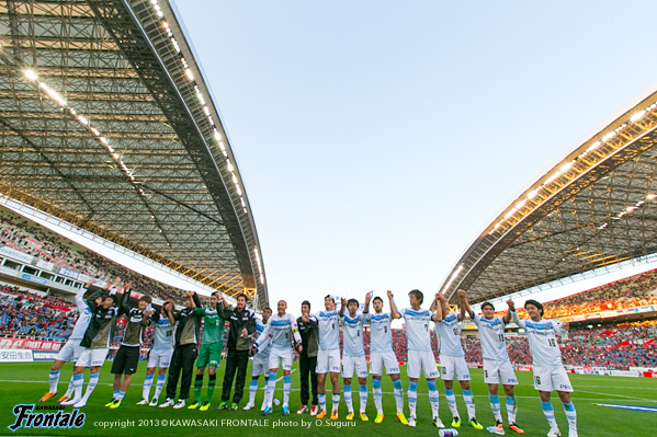 後半立ち上がりから浦和に攻勢をかけられ同点に追いつかれたものの、直後に反撃を繰り出しオウンゴールで勝ち越し。その後も浦和に押し込まれながらも効果的なカウンターでチャンスを作り。アディショナルタイムに大久保がダメ押しゴール。アウェイで貴重な勝点3を手に入れた。
