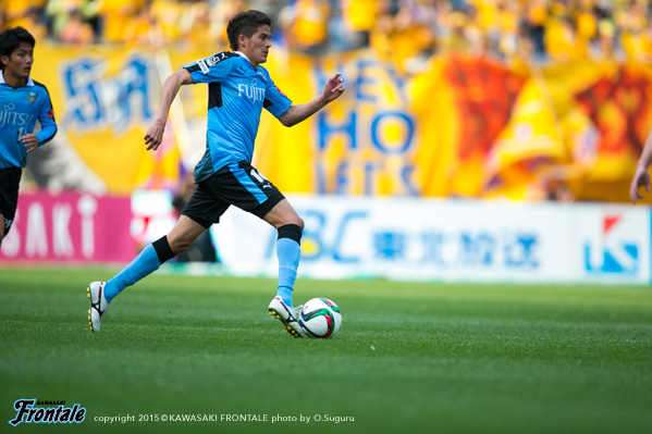後半スタートから武岡に代えて船山がピッチへ。大久保と船山の2トップ。エウシーニョが1列下がり4バックにシフト。48分、仙台の攻撃。ペナルティエリア左前からのフリーキックの場面。梁のボールはGK西部がセーブ。こぼれ球を茂木に狙われるが守備陣がブロック。49分、フロンターレの攻撃。直後に反撃。カウンターから仙台ゴール前に押し込むがフィニッシュにつながらず。51分、仙台の攻撃。カウンターから左サイドに流れたウイルソンにミドルシュートを打たれるが、DFに当たりGK西部がキャッチ。52分、右サイドでパスをつなぎ、大久保が折り返すがGKにキャッチされる。52分、仙台の攻撃。中央から左サイドに展開され、野沢にシュートを打たれるがGK西部がキャッチ。53分、フロンターレの攻撃。中村が中央から浮かし球を入れるが、左サイドを抜け出したレナトはオフサイドの判定。54分、パスをつなぎ大島がスルーパス。抜け出した船山がトラップからシュートを放つが、惜しくもゴール左に外れる。55分、車屋のドリブル突破から押し込み、左サイドのレナトがクロス。こぼれ球を大久保が右サイドから狙うが、シュートはゴール上に外れる。58分、中央やや左からのフリーキックの場面。レナトのボールはクリアされる。59分にも右サイドからのフリーキックを得るが、レナトのボールはクリアされる。60分、セカンドボールを拾って中村がゴール前に浮かし球を入れ、車屋がヘッドで狙うがうまくミートできず。61分、仙台の攻撃。中盤右からのフリーキックの場面。ボールが流れたところを野沢に狙われるが、シュートはGK西部の正面。62分、フロンターレの攻撃。自陣での角田のボールカットからカウンターへ。セカンドボールを拾って最後はレナトが左サイドからシュートに持ち込むが、これはGKの正面。63分、森谷に代わり小林が入り、小林がそのまま中盤右サイドへ。64分、フロンターレの攻撃。レナトが左サイドをドリブル突破。深い入から折り返すが、惜しくもゴール前に飛び込んだ車屋には合わず。66分、パスをつないで押し込むがラストパスにつながらず。67分、速攻からパスをつなぎ、最後は大島がミドルシュートを放つがGKにセーブされる。68分、中村の右コーナーキックを小林がヘッドで落とし、角田がシュートを放つがGK正面。惜しい場面だった。しかし迎えた70分、フロンターレの攻撃。我慢強くパスをつなぎ相手陣内に押し込み、大久保がスルーパス。右サイドから切れ込んでパスを受けた小林が切り返し、左足で落ち着いてシュートを決める。(1-1)