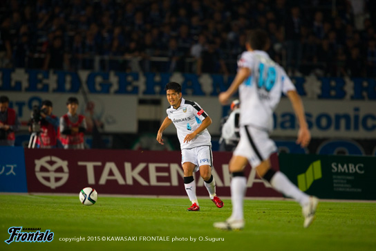 後半スタートから船山に代えて杉本がピッチへ。46分、G大阪の攻撃。中盤でボールを奪われロングボールを入れられ、右サイドのパトリックに遠目からシュートを打たれるがゴール左に外れる。48分、フロンターレの攻撃。パスを細かくつないでチャンスを狙うがラストパスにつながらず。49分、G大阪の攻撃。速攻を受けてゴール前で混戦となるが、GK新井が飛び出しどうにか止める。51分、フロンターレの攻撃。レナトが遠目からシュートを狙うが、DFに当たりGKにキャッチされる。52分、カウンターからスルーパスを出されるが、パトリックには角田が対応。53分、フロンターレの攻撃。自陣からパスをつないでゴール前に迫るが、ラストパスにつながらず。53分、G大阪の攻撃。攻勢をしのがれカウンターを受けるが守備陣がしのぐ。54分、左サイドにロングボールを出され、中央に切れ込んだ宇佐美にシュートを打たれるがGK新井がキャッチ。55分、フロンターレの攻撃。森谷がミドルシュートを放つがゴール上に外れる。57分、細かくパスをつないで押し込むがラストパスにつながらず。59分、パスをつないで中央突破。中村の縦パスを受けたレナトがシュートを放つが、惜しくもGKの好セーブに阻まれる。60分、セカンドボールを拾って押し込み、左サイドの車屋がドリブル突破からゴール前にボールを入れるが、このボールはGKにキャッチされる。62分、G大阪のカウンターをしのいで逆にカウンターへ。森谷がドリブル突破。スルーパスを狙うがゴール前に合わず。64分、パスをつないで大久保がスルーパスを狙うがエウシーニョに合わず。65分、G大阪の攻撃。ルーズボールを宇佐美にダイレクトで前線のパトリックに出されるが、GK新井が飛び出ししのぐ。66分、フロンターレの攻撃。コーナーキックの流れからゴール前に押し込み、エウシーニョが右サイドから強烈なシュートを放つが惜しくもGKにセーブされる。66分、G大阪の攻撃。直後にカウンターを浴びるが守備陣がしのぐ。67分、フロンターレの攻撃。中村の左サイドチェンジからパスをつなぎ、エウシーニョの右サイドからの折り返しを中村がダイレクトで狙うが、ミドルシュートはGKにキャッチされる。68分、G大阪の攻撃。カウンターを狙われるが、右サイドに流れたパトリックには谷口が対応。