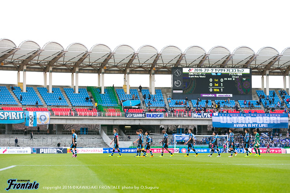 ナビスコカップ・グループステージ第2節、等々力に福岡を迎えての一戦。ホームで勝点3を取り、グループステージ突破に向けて勢いをつけたい。晴天の等々力陸上競技場。15:03キックオフ。