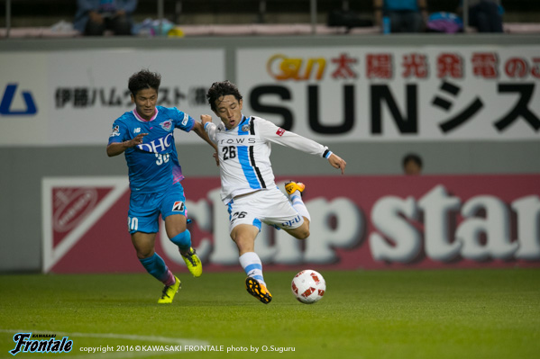 フロンターレのスターティングメンバーは、トップに三好、その下に狩野、左ワイドに中野、右に長谷川、ボランチは橋本と森谷のコンビ、最終ラインは車屋-エドゥアルド-谷口-武岡、GK新井。立ち上がり2分、鳥栖の攻撃。ルーズボールを拾われカウンターを狙われるが、武岡がスルーパスをカット。4分、左ショートコーナーから楠神にボールを入れられるが、GK新井がパンチングでしのぐ。5分、フロンターレの攻撃。パスをつなぎ中央突破を狙うがDFにクリアされる。6分、三好がはたき中野がドリブル突破からスルーパスを狙うが、狩野にはタイミングが合わず。7分、鳥栖の攻撃。右サイドから崩しを狙われるが、早坂の突破は車屋が対応。9分、フロンターレの攻撃。中盤やや右からのフリーキックの場面。狩野がボールを入れるがエドゥアルドには合わず。10分、左サイドから崩しをかけて中野がスルーパスを入れるが、車屋は追いつけず。11分、鳥栖の攻撃。中盤でカットされカウンターから押し込まれるが、守備陣が対応。12分、再び中盤でインターセプトされカウンターを狙われるが、守備陣がしのぐ。13分、フロンターレの攻撃。直後に反撃をかけ、右サイドから崩しをかけて橋本がスルーパス。長谷川が右サイドからアウトサイドでシュート狙うが、惜しくもGKにセーブされる。14分、連続右コーナーキックの場面。狩野のボールはいずれもクリアされる。14分、鳥栖の攻撃。直後にカウンターを狙われるが、楠神には武岡が対応。迎えた16分、フロンターレの攻撃。左サイドから攻勢をかけ、混戦のなかからペナルティエリア内でボールを奪い返した三好が左サイドから折り返し。このボールがDFに当たりゴールに吸い込まれる。(1-0) 18分、フロンターレの攻撃。右サイドから崩しをかけ長谷川がドリブル突破を狙うがDFに止められる。19分、鳥栖の攻撃。前線に長いボールを入れられるが、富山には車屋が対応。20分、フロンターレの攻撃。セカンドボールを拾って押し込むがファールで止められる。21分、鳥栖の攻撃。中盤でボールを奪われカウンターを狙われるが、ラストパスの精度に助けられる。