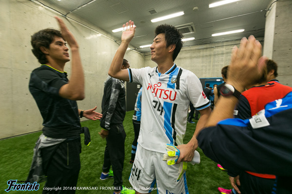 - 勝ったことがすべて。今回はコウ(板倉滉)がデビュー戦だったが、最初に勝つのと負けるのは全然違う。自分も経験させてもらったので、その気持ちが分かる。堂々とやっていたと思う。自分のプレーとしては自信を持ってやっている。ただ選手の距離感といった部分では少し心配もあったが、試合に入ってみれば問題なかった。あとはトレーニングと違う雰囲気を出すためにも、とにかく声をかけた。前の選手がかなり上下動していたので相当きつかったと思うが、ユウくん(小林悠)ではなくシンタロウ(車屋紳太郎)が入ってきて、後ろでブロックを作って守るという監督のメッセージが伝わってきた。あの流れだと攻撃に行って戻れずにカウンターを食らう危険性もあったので、みんなの意思疎通という部分でも良かった。総合的にはPKの失点だけだし、結果としてはよかったと思う。