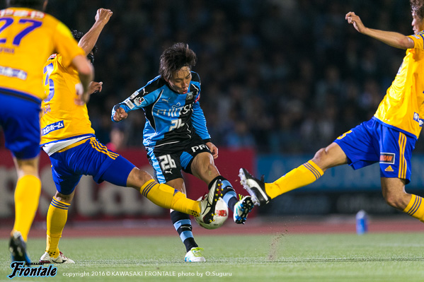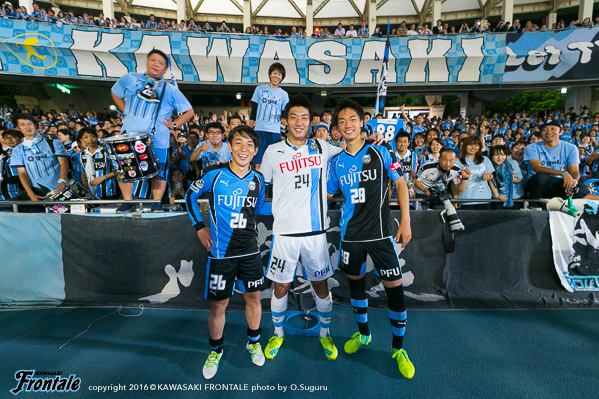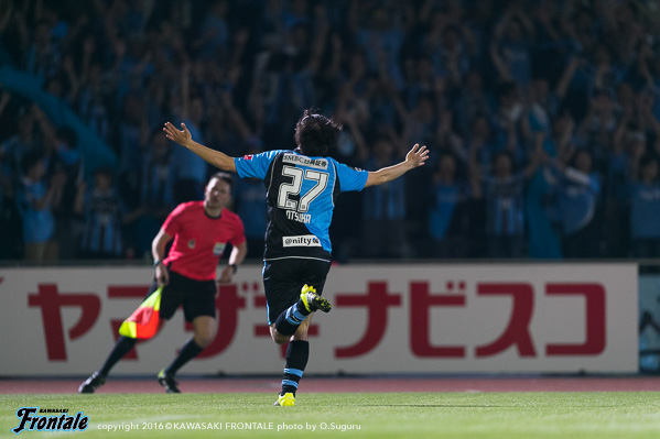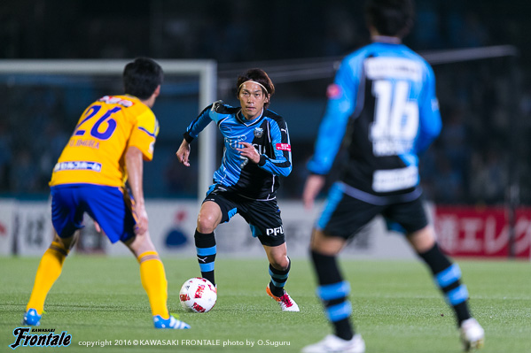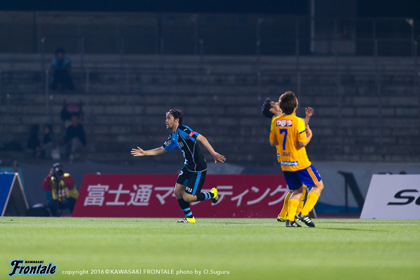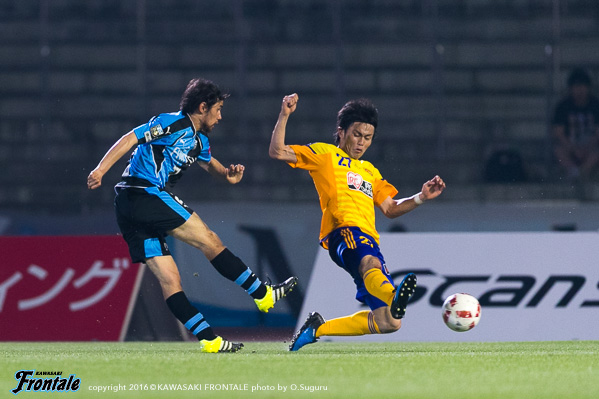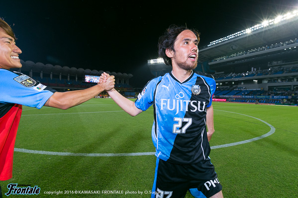 - まず試合に勝てて良かった。苦しい試合だったが、みんなで得た勝ち。自分としては、いつもと変わらない気持ちでと考えて試合に臨んだ。ただ、自分はトライアウトで川崎に拾ってもらった立場。それにも関わらず、まだリーグ戦に出れていない状況。やはりやってやろうという思いは強かった。普段出てない選手にはチャンスだった。そのなかで、みんなで勝利を掴めた。勝つことができた。先制点は、高い位置から良いディフェンスをしてくれて、最後はコウジさん(橋本晃司)が良いパスを出してくれた。トラップミスをしたが、うまく持ち変えて、狙い通り決めることができた。先制点の前のチャンスで1本外してしまったので、開き直って思い切りシュートを打とうと思っていた。2点目は、三好が良いパスをくれたし、1点を取っていた余裕で冷静だった。2点ともいいパスが来たので、自分が決めるだけだった。相手は前に強力な選手がいたのでピンチもあった。後半は厳しい展開だった。自分としてはその後チャンスがあったがうまくいかず、みんなに迷惑をかけてしまった。そこはもっと突き詰めていきたい。今日は、大勢のサポーターの皆さんの前で決めることができて最高の気分。声援がすごく嬉しかった。これからもああいう声援をもらえるように、自分自身努力して頑張っていきたい。