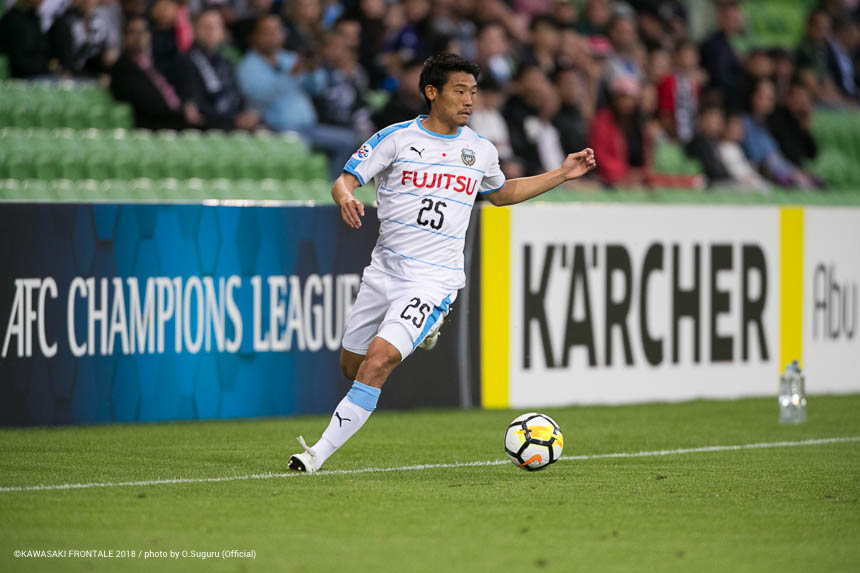 G大阪戦が終わってすぐ移動というスケジュールだが、そういう状況でチャンスをもらったときにチームに貢献できるよう準備はしてきたつもりなので、地に足をつけて試合に臨みたい。試合会場のピッチは当日どれだけ水をまくかわからないが、けっこうボールが走った印象がある。ACLは絶対勝たなければいけない試合なので多少硬くなってしまうかもしれないが、まず失点は避けなければいけない。でもフロンターレはボールを持って…