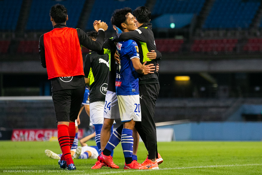 後半湘南のプレッシャーに苦しみながらも粘り強く試合を運び、旗手のゴールで同点に追いつく。その後はお互いの持ち味をぶつけ合う攻防が続くが、アディショナルタイムに知念が執念でゴールを奪い、前節に引き続き劇的な展開で勝利を挙げた。