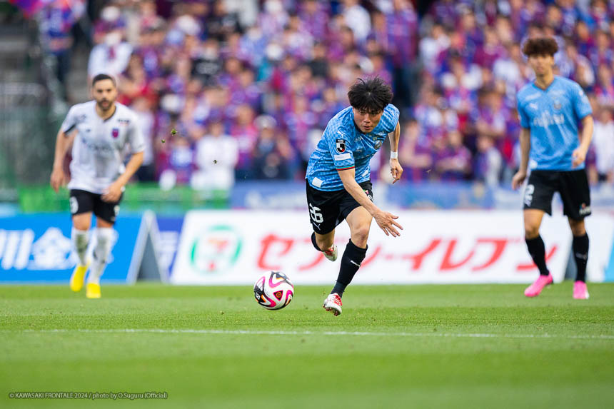 47分、フロンターレの攻撃。セカンドボール回収から圧力をかけ、橘田が右サイドから浮き球を入れるがゴール前に合わず。49分、FC東京の攻撃。中盤でセカンドボールを拾われ、左サイドからクロス。さらに攻勢をかけられゴール前にボールが入るが守備陣がかき出す。50分、フロンターレの攻撃。右サイドに展開。ゴール前に入ったボールを逆サイドから三浦がシュートを放つがブロックされる。52分、FC東京の攻撃。相手陣内でカットされ、左サイドから折り返しを狙われるが橘田が対応。さらに右サイドから仲川に折り返しを狙われるが三浦と遠野で対応。54分、自陣からボールを運び瀬古が中盤からスルーパスを入れるがオフサイドの判定。55分、フロンターレの攻撃。パスをつながれて左サイドからエリア内にボールが入るが守備陣が対応。58分、FC東京の攻撃。右コーナーキック。ショートコーナーから松木にボールを入れられ、混戦となるがFC東京のファウルの判定。59分、フロンターレの攻撃。三浦がボールを運び、中盤中央からラストパス。エリソンが抜け出すがオフサイドの判定。62分、中盤でボールを奪い返して瀬川が折り返し。遠野が2度合わせるがGKに止められる。63分、FC東京の攻撃。攻勢をしのがれ、カウンターを狙われるが仲川には瀬古が対応。64分、フロンターレの攻撃。左サイドから崩しをかけ、狭いなかから抜け出した三浦がシュートに持ち込むが枠を外れる。惜しい場面だった。64分、フロンターレのメンバーチェンジ。瀬川に代わって佐々木がピッチへ。69分、フロンターレの攻撃。相手陣内でボールを奪い返し、左サイドから三浦がクロスを入れるがクリアされる。69分、中盤でボールを奪い返しカウンターへ。左サイドから家長が折り返し。ゴール前の混戦からエリソンがシュートを狙うがうまくミートせず。惜しい場面だった。