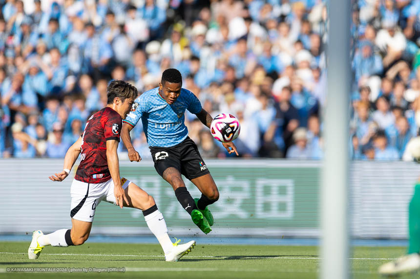 46分、フロンターレの攻撃。左サイドでパスをつなぎ崩しをかけるがファウルで止められる。47分、エリア左前からのフリーキック。脇坂が直接シュートを狙うが惜しくもクロスバーに当たり外れる。48分、中盤でボールを奪われ、左サイドに展開されるが渡邉には家長が戻って対応。48分、さらに左サイドに展開され、クロスが入るが際がクリア。49分、直後に反撃をかけゴミスが中盤で粘り、佐々木が左サイドからドリブルをしかけてゴール前に迫りミドルシュートを決める(2-1)。52分、浦和の攻撃。相手陣内でボールを奪い押し込むがフィニッシュにつながらず。53分、ロングボールのセカンドボールを拾われ、大久保にクロスを入れられるが瀬川がクリア。セカンドボールを拾われて圧力をかけられるが守備陣がしのぐ。55分、フロンターレの攻撃。自陣からボールを運び、脇坂が右サイドに展開。家長がダイレクトでクロスを入れてファーサイドに走り込んだマルシーニョが合わせるが惜しくもゴール左に外れる。56分、左サイドから右に展開。瀬川が低いボールを入れるがクリアされる。57分、橘田が左サイドに展開。際がクロスを入れるがゴール前に合わず。57分、相手エリア前でボールを奪って家長がミドルシュートを放つがゴール上に外れる。59分、浦和の攻撃。右サイドから崩しをかけられるが佐々木がカバーリング。60分、右サイドに振られると、折り返しを安居に合わせられDFに当たりコースが変わるがゴール左に外れる。危ない場面だった。60分、左コーナーキック。グスタフソンのボールはゴミスがクリア。61分、フロンターレの攻撃。パスをつないで押し込み、大南がエリア内に走り込みシュートを狙うがDFに当たり外れる。62分、左コーナーキック。脇坂のボールをゴミスがヘッドで合わせるがクリアされる。62分、浦和の攻撃。直後にカウンターを狙われ、大久保に突破を狙われるが佐々木が戻りながら対応。65分、右サイドからのフリーキック。グスタフソンのボールは佐々木がクリア。65分、パスをつながれて押し込まれるがチームディフェンスで対応。67分、左サイドに展開され渡邉のクロスが入るがGK上福元がキャッチ。69分、自陣からボールを運ばれゴール前に迫られるが守備陣がしのぐ。