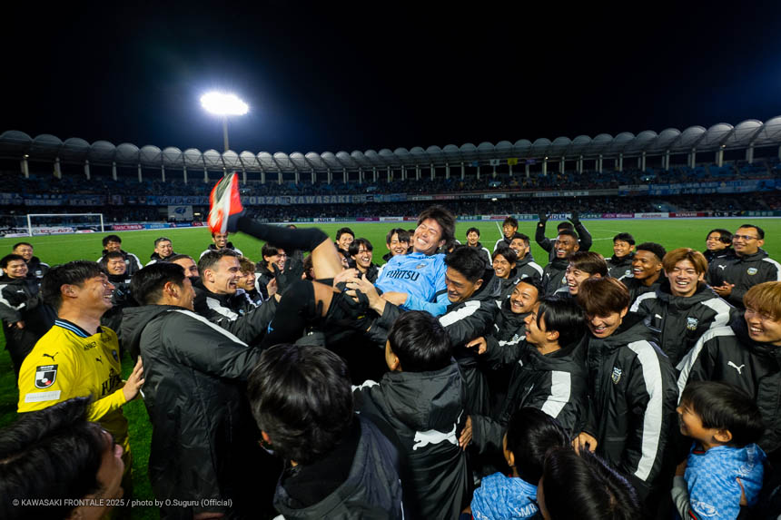 今日ここ川崎で見せたチームのパフォーマンスに関して非常に満足しています。最初から最後までいい試合ができました。ここ4年間で目指してきたものがすべていい形で出た試合だと思います。前からプレスに行ってボールを奪う。ボールを動かす。ボールを奪ったらできるだけ早く相手のボックス内に入る。そういったことがすべてできたと思ってます。それから今日、ここに来てくれたサポーターには本当に感謝しています。今までのアウェイでもたくさんのファンが来てくれて、いつもホームのようにサポートしてくれていました。今まで4年間アウェイの地で受けてきたこの雰囲気というか、スタジアムの雰囲気に関しても非常に感謝しています。アウェイでありながらしっかりリスペクトを持った応援がありました。自分たちのいいプレーには喜んでもらえたと感じていますし、そういったフェアな雰囲気はすばらしいものがありました。すごく感謝しています。