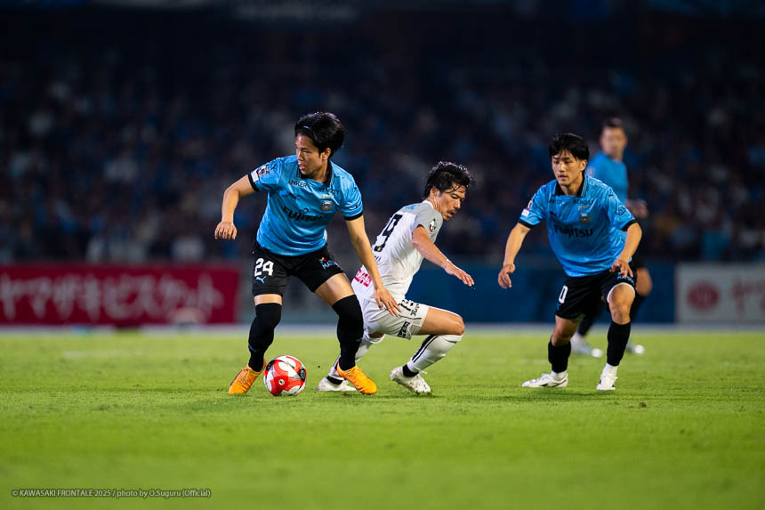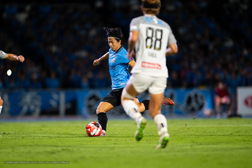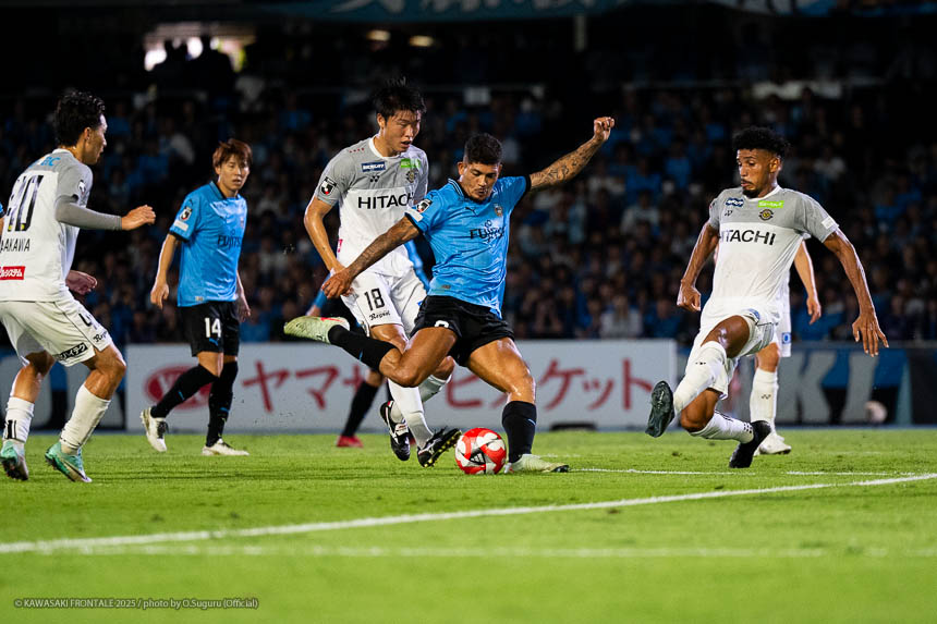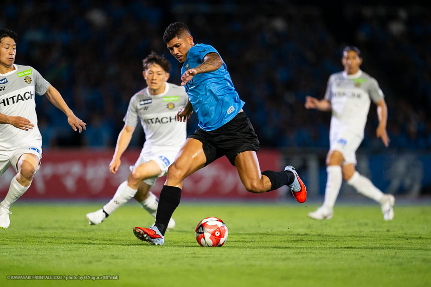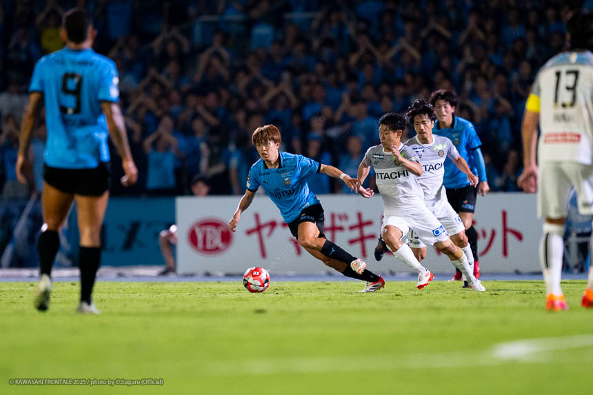 48分、柏の攻撃。パスをつながれ押し込まれるが守備陣がクリア。48分、左サイドに展開され折り返されるがGKソンリョンがキャッチ。50分、フロンターレの攻撃。相手陣内でマルシーニョがボールを奪いエリソンが左サイドに回り込むがシュートに持ち込めず。50分、柏の攻撃。直後にカウンターを狙われるが際が戻り対応。51分、リスタートの流れ。左サイドからのクロスを垣田にヘッドで合わせられるがGKソンリョンがキャッチ。51分、さらに速攻から中央突破を狙われるが守備陣がしのぐ。53分、左サイドに展開され折り返しを受けた小泉にシュートに持ち込まれるが守備陣が体に当ててブロック。54分、左コーナーキック。ショートコーナーから遠めから犬飼にシュートを打たれコースが変わるがGKソンリョンがセーブ。こぼれ球を拾われ左サイドから折り返しが入るが守備陣が体を張ってしのぐ。56分、パスをつながれ押し込まれるがチームディフェンスでしのぐ。58分、相手陣内で脇坂がボールをカット。山本がスルーパスを狙うがエリソンに合わず。60分、右サイドに振られ深い位置からクロスが入るが守備陣が対応。さらにセカンドボールを拾われ圧力をかけられる。61分、連続してミドルシュートに持ち込まれるが守備陣がブロック。61分、フロンターレのメンバーチェンジ。エリソンに代わってロマニッチがピッチへ。62分、柏の攻撃。山田にドリブルでエリアに入り込まれ右サイドから折り返し。GKソンリョンが触るがこぼれ球を拾われ左サイドからのクロスを小泉にヘッドで合わせられる(2-1)。64分、さらに攻勢をかけられエリア内にボールが入るが守備陣がしのぐ。65分、パスをつながれ押し込まれるがチームディフェンスで耐える。65分、さらに左サイドから速いボールを入れられ逆サイドから山之内にゴール前に走り込まれるが田邉が戻りながら対応。ピンチをしのぐ。68分、右サイドに振られ崩しをかけられるが守備陣がしのぐ。セカンドボールを拾われるが全員で耐える。