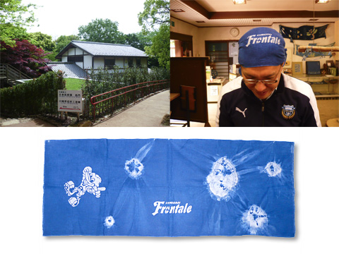 ①フロンターレオリジナル藍染手拭い作りの体験(日本民家園内伝統工芸館)