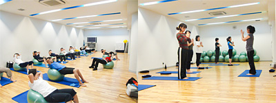 バランスボールを使ってピラティスを行いコアを刺激し、身体のラインを整えます。姿勢改善にも効果があるプログラムです。