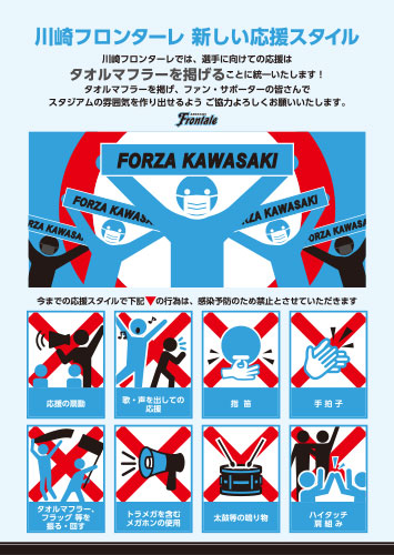 川崎フロンターレでは、新型コロナウイルス感染拡大防止を徹底し『安全・安心・快適』なスタジアムを目指し引き続き、尽力いたします。皆様のご理解とご協力をお願い申し上げます。