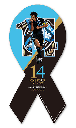 『BANDIERA KENGO NAKAMURA』その言葉とエンブレムに手を添える姿。今までのフロンターレでの歴史を背景にシンプルかつ力強く、仕上がりました。